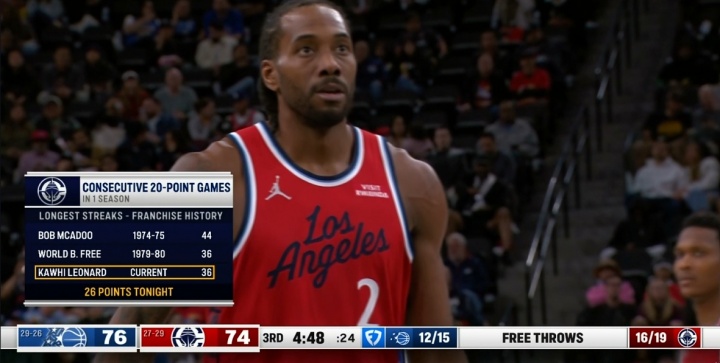 小卡连续36场20+ 队史第三了!