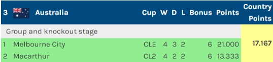 在亚冠精英联赛1/8决赛次回合前,中超积分仅高出澳超约0.8分,墨尔本城常规时间0-0战平武里南联,拿到1个竞技积分,除以本赛季参加亚冠的澳超球队数量(2),澳超积分上升约0.5分,仍然落后中超0.3分。