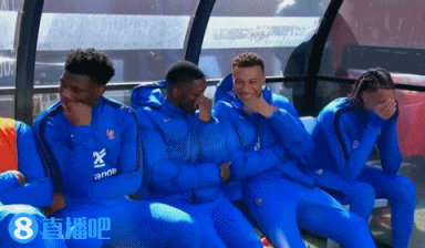 上半场转播镜头拍向法国队的替补席,登贝莱、姆巴佩和奥利塞在替补席上说说笑笑,姆巴佩更是靠在奥利塞的身上开怀大笑。